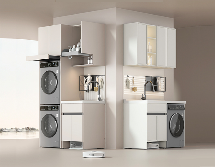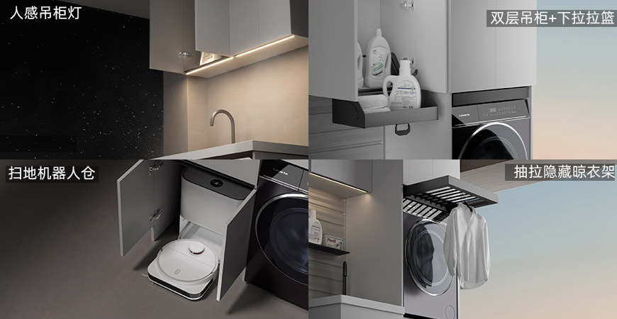 掃地機器人倉:節(jié)省空間,上下水可接入陽臺下水管。